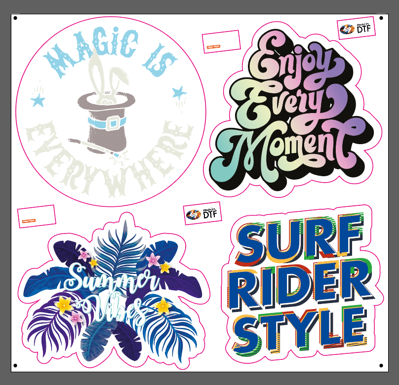 Viele Motive, aber keine Lust zu schneiden? Dann bist du hier richtig! Übermittle uns deine Druckdaten inkl. Cutkontur und wir liefern dir deine Motive einzeln und fertig zugeschnitten. So sparst du dir den Aufwand und kannst direkt mit dem Verpressen starten.